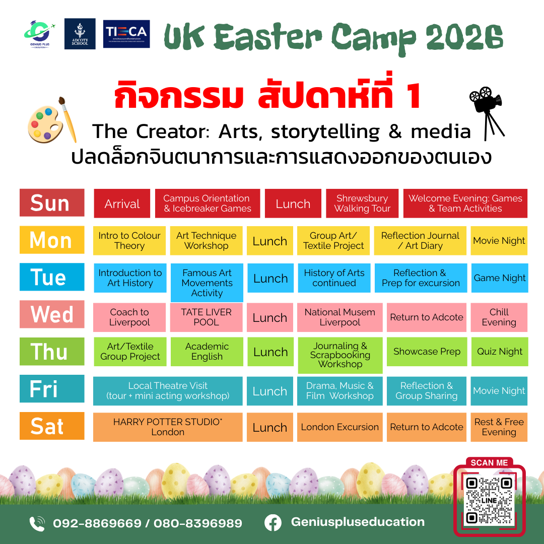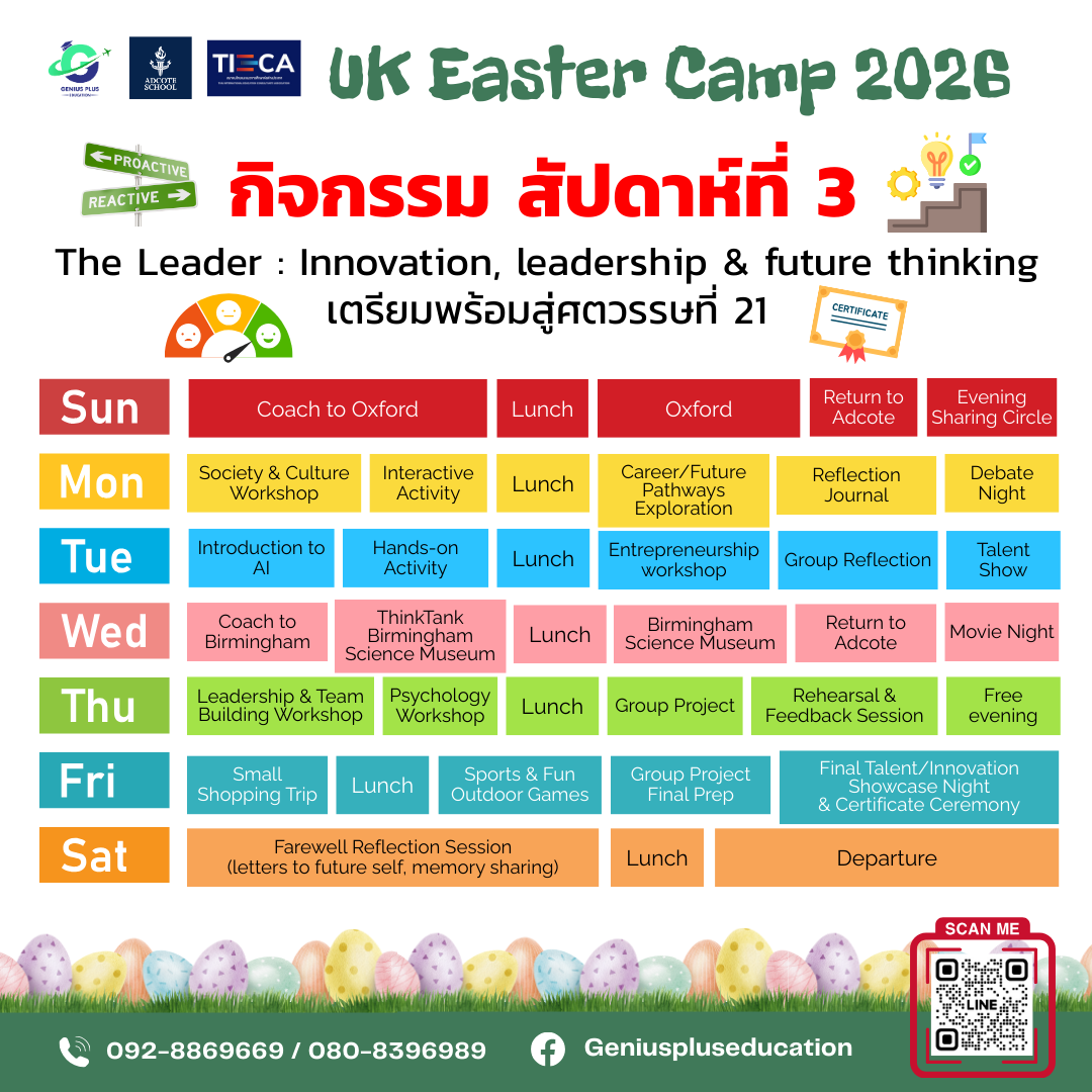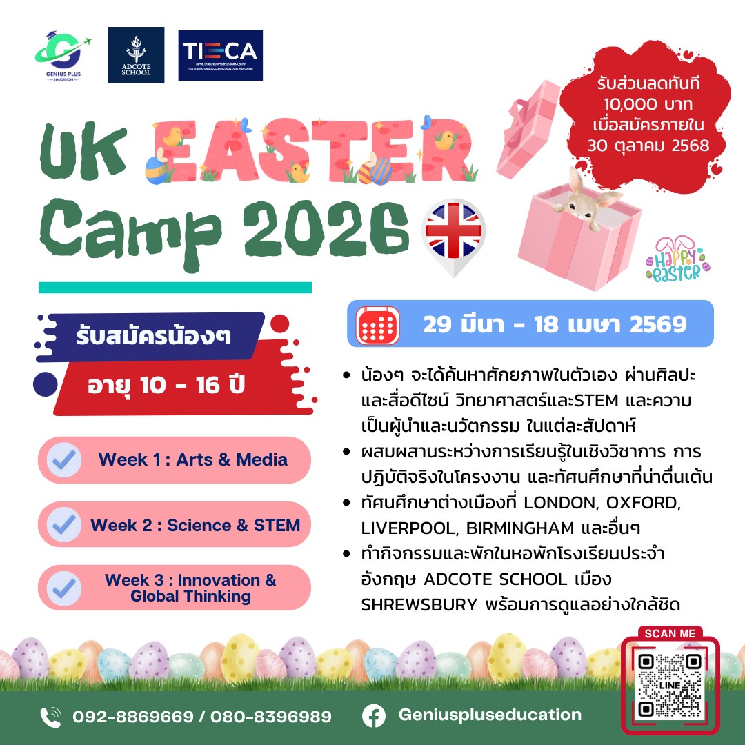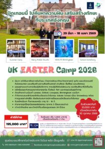 น้องๆ ที่สนใจสมัคร โปรแกรม UK Easter Camp 2026 สอบถามข้อมูลได้ที่